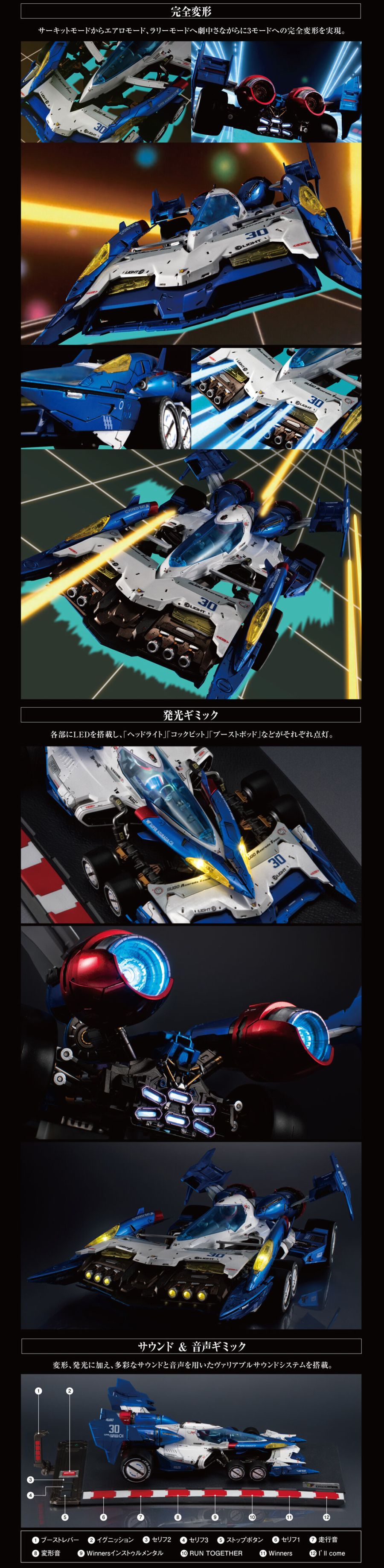 ¾²¸®¸Þ°¡ ½´ÆÛ ¾Æ¼ö¶ó´Ù 01Àº Å×Å©´ÏÄà ¼Å¶ ¸ðµå, ¿¡¾î·Î ¸ðµå, ·¤¸® ¸ðµåÀÇ ¼¼ °¡Áö ¸ðµå·Î ¿ÏÀüÈ÷ º¯È¯ÇÒ ¼ö ÀÖ½À´Ï´Ù. ·¹À̽ºÄ«ÀÇ ±â´ÉÀ» ÀüȯÇÏ¿© ´Ù¾çÇÑ Æ®·¢ ±â´ÉÀ» Á¶Á¤ÇÕ´Ï´Ù. ·¹À̽ºÄ«ÀÇ ±Ý¼Ó ÄÚÆÃ Â÷ü¿Í À̵¿ °¡´ÉÇÑ ºÎǰÀº ÁÖ·Î ´ÙÀÌij½ºÆ® ¾Æ¿¬ Çձݰú POM ¹× ABS¿Í °°Àº ¿£Áö´Ï¾î¸µ ÇÃ¶ó½ºÆ½À¸·Î ¸¸µé¾îÁ® ±â´É¼º°ú ³»±¸¼ºÀ» Çâ»ó½Ãų ¼ö ÀÖ½À´Ï´Ù.¡¤ LED Á¶¸í ±â´É: Çìµå¶óÀÌÆ®, Á¶Á¾¼® ÄܼÖ, ºÎ½ºÆ® Æ÷µå ¸ðµÎ ºÒÀ» ÄÓ ¼ö ÀÖ½À´Ï´Ù. »çÀ̹ö Ű´Â ´ÙÀÌij½ºÆ®¸¦ »ç¿ëÇϸç Çìµå¶óÀÌÆ®¿¡ °¡±îÀÌ ´ë¸é Çìµå¶óÀÌÆ®ÀÇ Á¶¸íÀ» Æ®¸®°ÅÇÒ ¼ö ÀÖ´Â ÀÚ¼®ÀÌ ³»ÀåµÇ¾î ÀÖ½À´Ï´Ù.¡¤ »ç¿îµå Ư¡: º£À̽º¿¡´Â »ó¡ÀûÀÎ »ç¿îµåÆ®·¢, »ç¿îµå ÀÌÆåÆ®, ij¸¯ÅÍ ¸ñ¼Ò¸®°¡ Æ÷ÇԵǾî ÀÖ½À´Ï´Ù. ij¸¯ÅÍ ¸ñ¼Ò¸®´Â ¸ðµÎ ÀϺ»¾î·Î »õ·Ó°Ô ³ìÀ½µÇ¾î ÀÖÀ¸¸ç, ¿À¸®Áö³Î Ŭ·¡½Ä TV ½Ã¸®ÁîÀÇ ¿À¸®Áö³Î ¼º¿ìµéÀÌ ¿¬±âÇÕ´Ï´Ù. º£À̽º Ãø¸éÀÇ ·¹¹ö¸¦ µÚ·Î ¹Ð¸é ·¹À̽ÌÄ«ÀÇ ºÎ½ºÆ® Æ÷µå°¡ ÆË¾÷µÇ°í, Ư¼ö »ç¿îµå ÀÌÆåÆ®¿Í ÇÔ²² "ºÎ½ºÆ® Æ÷µåÀÇ ¸Å·ÂÀûÀÎ! ¿£Áø ÀÓ°èÁ¡±îÁö Ä«¿îÆ®´Ù¿îÀ» ½ÃÀÛÇÕ´Ï´Ù."¶ó°í ¸»ÇÏ´Â ¸ñ¼Ò¸®°¡ ÀϺ»¾î·Î Àç»ýµË´Ï´Ù.¡¤ °üÀýÇü ÇDZԾî: Çï¸äÀ» ¾´ Ä«ÀÚ¹Ì ÇϾßÅäÀÇ °üÀýÇü ÇDZԾ Æ÷ÇԵǾî ÀÖÀ¸¸ç, ¿îÀü¼®¿¡ ³õÀ» ¼ö ÀÖ½À´Ï´Ù.¿Ïº®ÇÏ°Ô º¯Çü °¡´ÉÇÑ ±â´É, Á¶¸í, »ç¿îµå, °íǰÁú µðÀÚÀΰú °áÇÕµÈ ÃÖ°íÀÇ ½´ÆÛ ¾Æ¼ö¶ó´Ù 01À» Áñ°Üº¸¼¼¿ä!¡¤ ¾²¸®Á¦·Î¿Í ¸Þ°¡ÇϿ콺ÀÇ ¾²¸®¸Þ°¡ Äݶ󺸷¹ÀÌ¼Ç ºê·£µå·Î °³¹ßµÇ¾ú½À´Ï´Ù¡¤ ¾à 277mm ±æÀÌ(±â¼ú ȸ·Î ¸ðµå)¡¤ ¾²¸®Á¦·Î Å©¸®¿¡ÀÌÆ¼ºê µð·ºÅÍ Ä̺ó »ç¿ì°¡ Àç¼³°èÇß½À´Ï´Ù. ¸ÞÄ« µðÀÚÀÎÀÇ °ÅÀå ¼îÁö Ä«¿Í¸ð¸®°¡ ¸¸µç ¿À¸®Áö³Î Çü½ÄÀ» À¯ÁöÇϸ鼵µ Ä̺óÀº Ç¥¸é¿¡ ´Ù¾çÇÑ ±â°èÀû µðÅ×ÀÏÀ» Ãß°¡Çß½À´Ï´Ù¡¤ "±â¼ú ȸ·Î ¸ðµå", "¿¡¾î·Î ¸ðµå", " ·¤¸® ¸ðµå" »çÀÌ¿¡¼ ¿ÏÀüÈ÷ º¯È¯ °¡´É¡¤ °í±Þ ±Ý¼Ó ÄÚÆÃÀÌ Æ¯Â¡ÀÔ´Ï´Ù¡¤ LED Á¶¸í ±â´É: Çìµå¶óÀÌÆ®, Á¶Á¾¼® ÄܼÖ, ºÎ½ºÆ® Æ÷µå ¸ðµÎ ºÒÀ» ÄÓ ¼ö ÀÖ½À´Ï´Ù. »çÀ̹ö Ű´Â ´ÙÀÌij½ºÆ®¿Í ÇØ½Ã ÀÚ¼®À» »ç¿ëÇÏ¿© Çìµå¶óÀÌÆ®¿¡ °¡±îÀÌ ´ë¸é Çìµå¶óÀÌÆ®ÀÇ Á¶¸íÀ» Æ®¸®°ÅÇÕ´Ï´Ù.¡¤ »ç¿îµå Ư¡: º£À̽º¿¡´Â »ó¡ÀûÀÎ »ç¿îµåÆ®·¢, À½Çâ È¿°ú, ±×¸®°í ij¸¯ÅÍ ¸ñ¼Ò¸®°¡ Æ÷ÇԵǾî ÀÖ½À´Ï´Ù.*AAA ¹èÅ͸® x 3 ¹× AG0 ¹èÅ͸® x 8 ÇÊ¿ä(¹èÅ͸® ¹ÌÆ÷ÇÔ)
